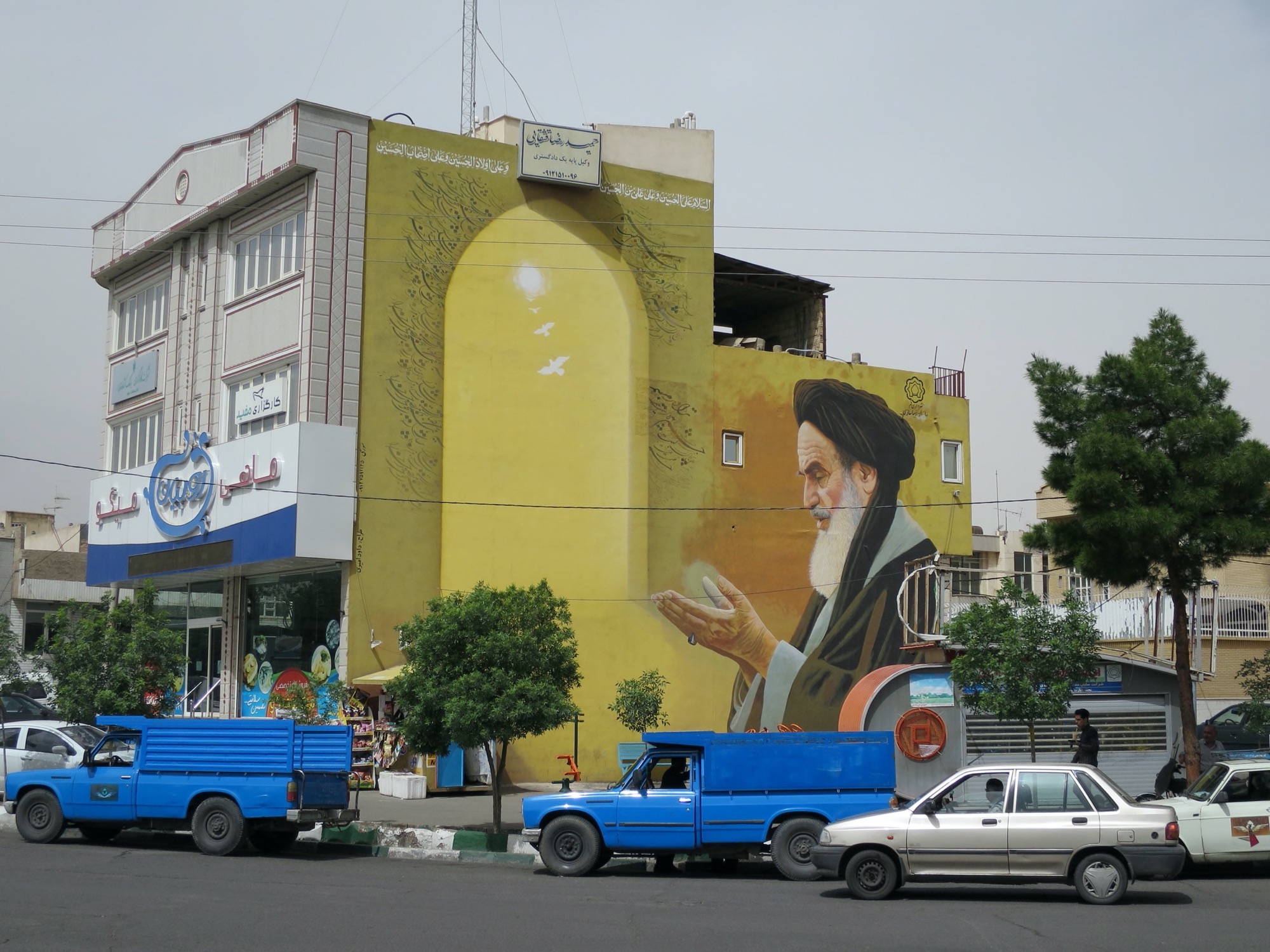 Methodologically the maelstrom of images resolves into a scholarly focus on the state and the individual. We have already seen the image of Imam Khomeini as equivalent to the revolution itself. Khomeini won the revolution for Islam, and Islam for the revolution, as Chelkowski and Dabashi put it.24 Henceforth there could be no revolution except the Islamic revolution, and no Islam but a revolutionary Islam. Images would remain as vehicles for persuasion and resistance. In the post-revolutionary context, murals had ongoing relevance for what Gruber calls “mobilisation”; the need for the state to catalyse individual action during the Iran-Iraq War (1980-1988), and in the broader project of state building.25 Murals became a state appendage for the management of crowds.26 They became the mechanisms in an ongoing culture war, where culture literally became the regime’s programme of urban signage.27 It is worth emphasising the obvious parallel between this appropriation of public space and the broader system of “Islamic governance” in Iran. The Islamic Republic’s laws–codified and judicially administered and structured according to Western categories like “family” and “criminal” law–are characteristically “modern” in their form. Such is Hallaq’s argument, as we have seen. Although structured as a hybrid democratic/oligarchic system with both elected representatives and supervision by the Shia clerical class, power over the state security apparatus, and the effective locus of sovereignty, culminates in the office of Ayatollah Ali Khamenei, the current Vali-e Faqih or Guardian Jurist.28